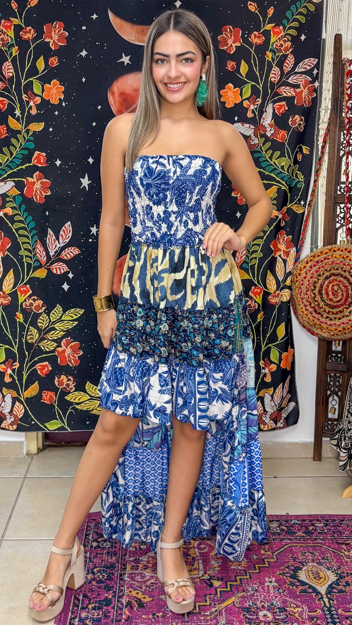 Description》 Unleash your free-spirited style with our Akila Smocked High-Low Dress. Featuring an eye-catching abstract print, this strapless beauty is designed for effortless elegance. The stretchy, smocked bodice offers a flattering fit, while the tiered, high-low hem adds graceful movement with every step. Perfect for sun-drenched days or enchanting nights, this versatile dress transitions seamlessly from casual to chic. Pair it with statement jewelry and your favorite sandals or heels for a look thats uniquely yours. It's a very special piece completely handmade with lots of love ♡ Because of this, the position of the fabric pattern may be different from that shown in the product image. Consider this as an original feature of the garment, rather than a defect. |