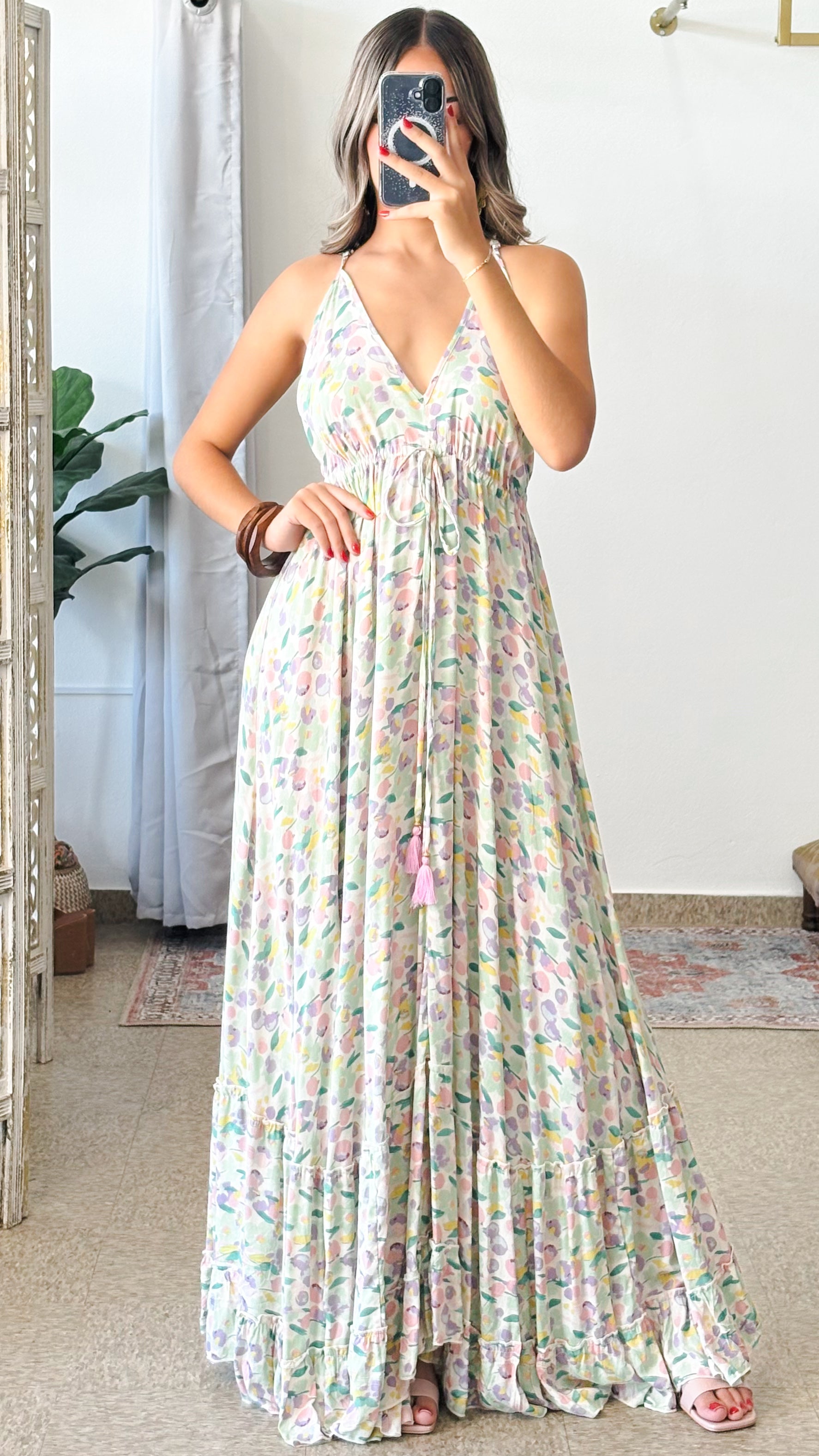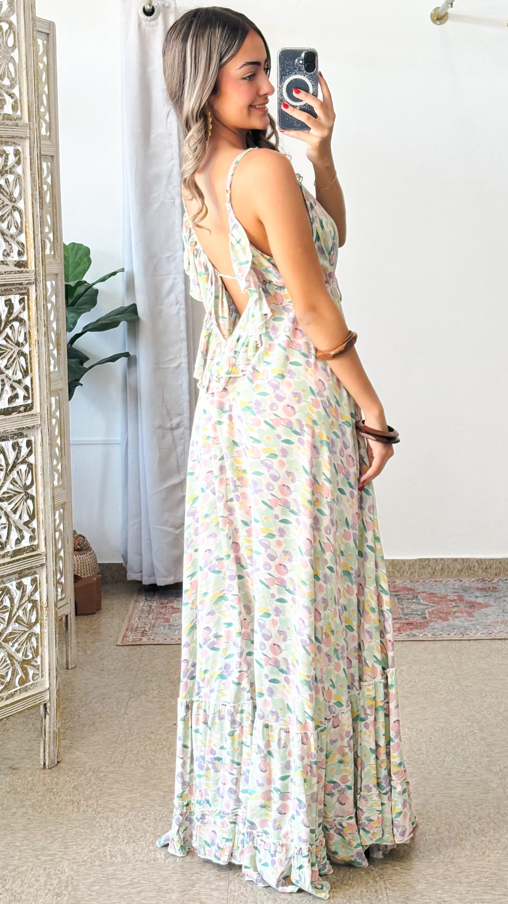 Description》 Lightweight soft fabric. A relaxed, bohemian bold print design gives a cool vibe, and sweeps from the halter neckline, into a sleeveless bodice with a V-neckline, adjustable straps, and a gorgeous ruffle at back. Features adjustable self-tie waistline for better fit. It's a very special piece completely handmade with lots of love ♡ Because of this, the position of the fabric pattern may be different from that shown in the product image. Consider this as an original feature of the garment, rather than a defect. |