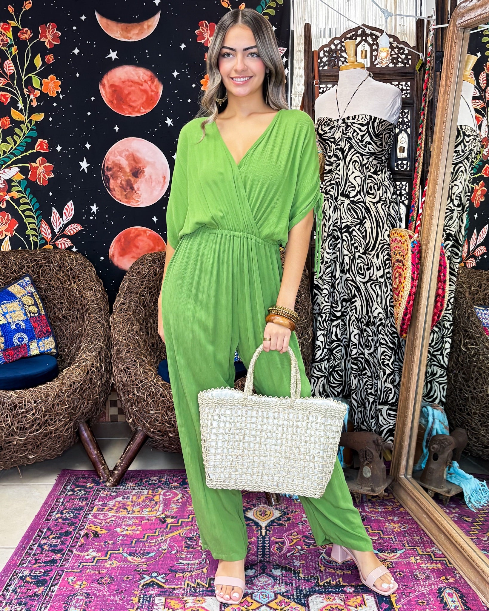 Description》 This relaxed-fit jumpsuit brings together style and ease in one effortless piece. Featuring a flattering surplice neckline, elastic waist for a comfy silhouette, and adjustable drawstring details on the sleeves, it’s the perfect blend of casual and chic. The soft, flowy fabric drapes beautifully, making it ideal for day-to-night wear, travel days, or weekend outings. It's a very special piece completely handmade with lots of love ♡ Because of this, the position of the fabric pattern may be different from that shown in the product image. Consider this as an original feature of the garment, rather than a defect. |