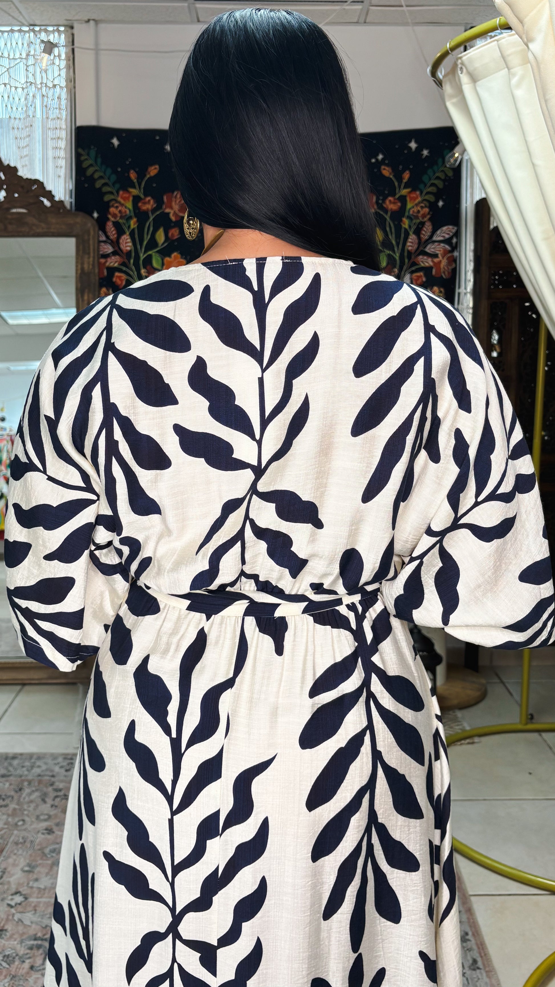 Description》 A flowy maxi dress with wide sleeves, a flattering V-neckline, and a self-tie waist. Designed with a bold botanical print and a soft, crinkled texture that moves beautifully with every step. From beachside dinners to weekend festivals, this dress brings effortless elegance with a dash of bohemian fire. Just add sandals and statement earrings — and let your free spirit shine. Details: • Lightweight, silky fabric with luxurious drape • Bold paisley print in golden hues • Kimono sleeves with wide flowy cut • Adjustable tie waist for a flattering fit • Side slit for movement and flair • Made in USA
