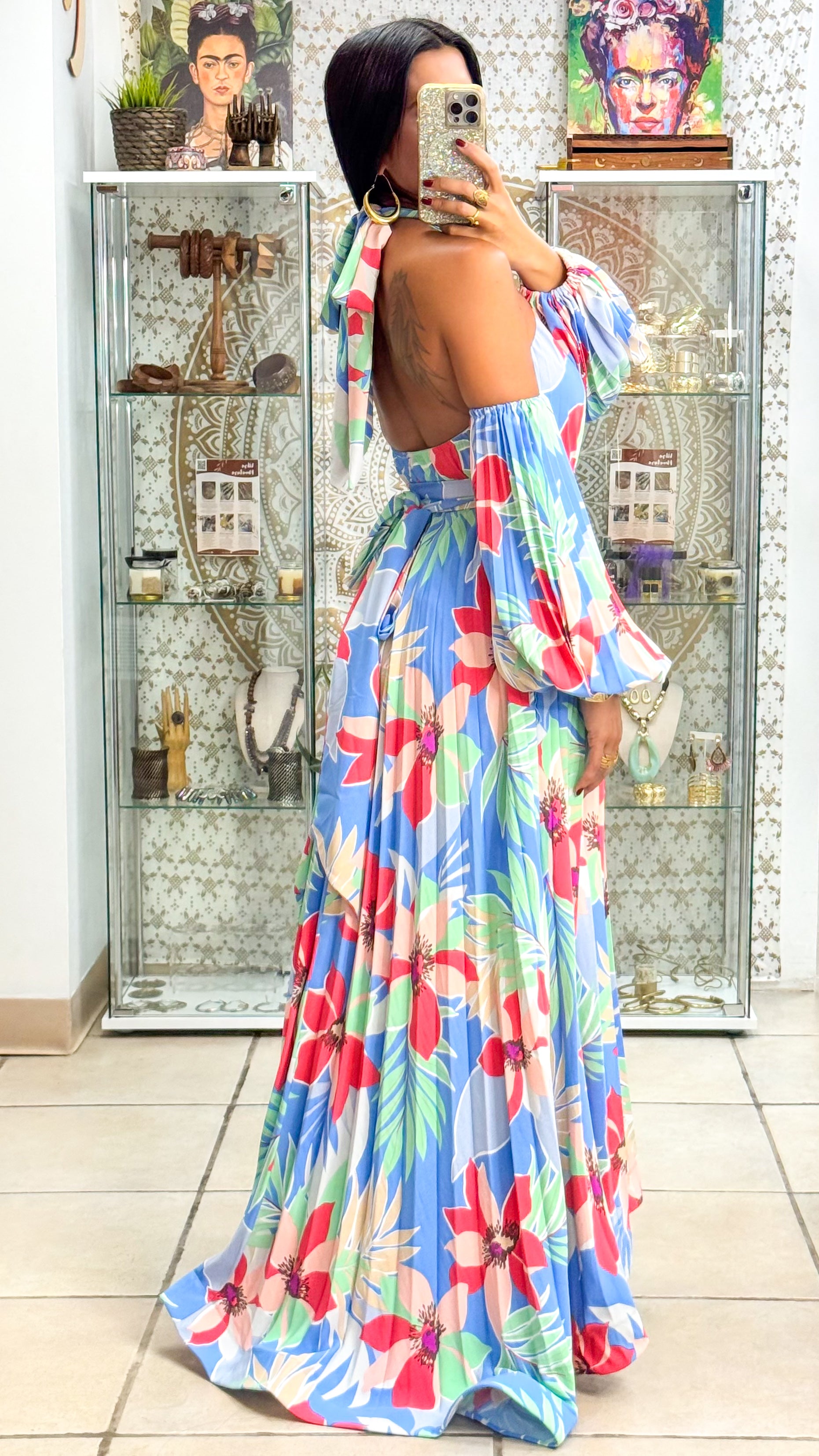 Description》OVERSIZE Flowy and effortlessly elegant, this halter maxi dress features a pleated silhouette that moves beautifully with every step. Designed with an open shoulder detail and long, billowy sleeves that gather at the wrists, it combines comfort and sophistication. The adjustable waist tie allows for a personalized fit that flatters your shape, while the high neckline with a back bow adds a chic and feminine touch. Perfect for beach weddings, brunch dates, or sunset events. It's a very special piece completely handmade with lots of love ♡ Because of this, the position of the fabric pattern may be different from that shown in the product image. Consider this as an original feature of the garment, rather than a defect. |