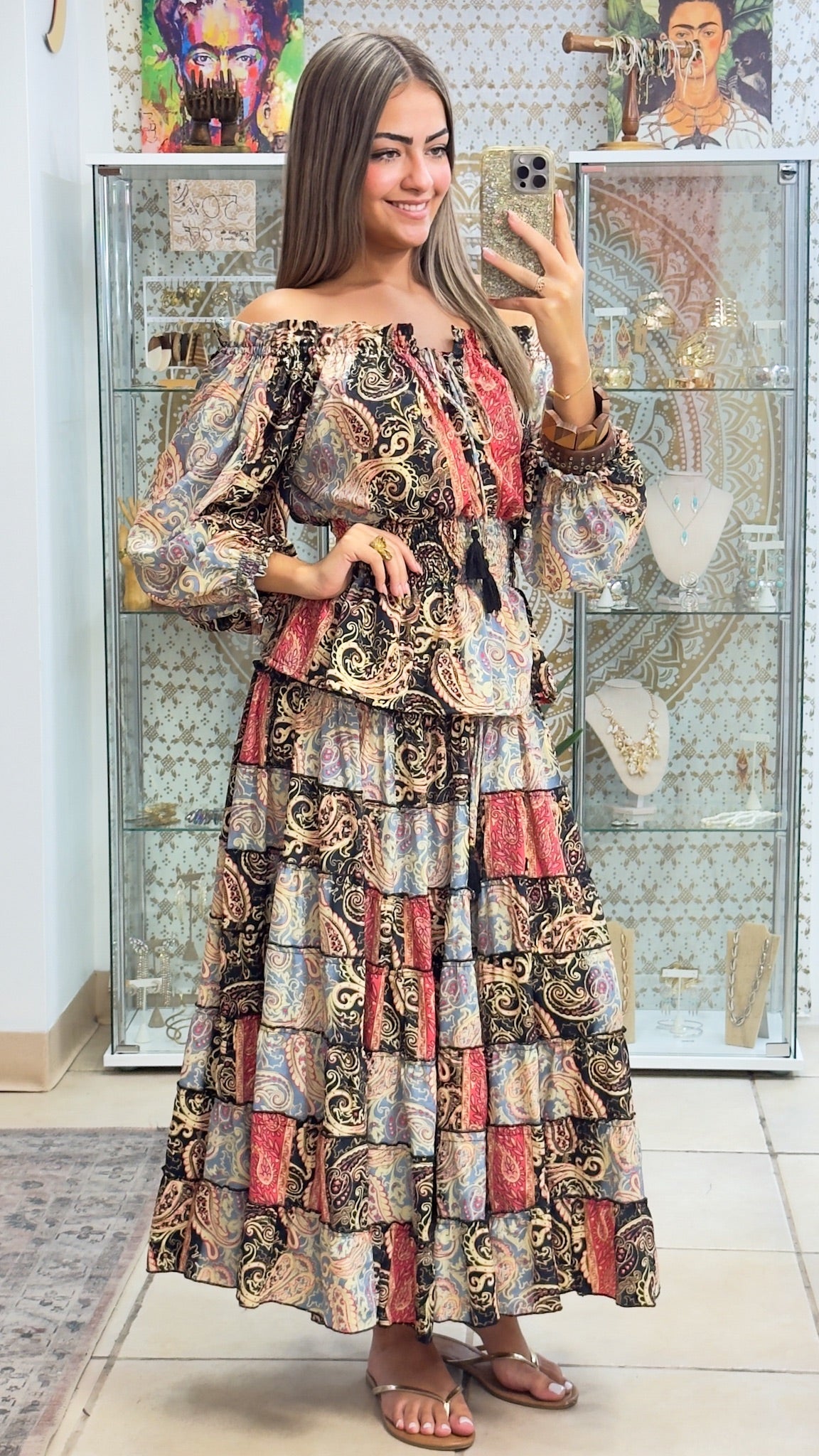 Feel the rhythm of the sun in our Hippie Maxi Skirt — a bold and breezy statement piece that moves with your free spirit. Designed with a comfy elastic waist and playful tassel ties, it’s perfect for dancing barefoot at festivals, strolling through markets, or dressing up for a sunset dinner.