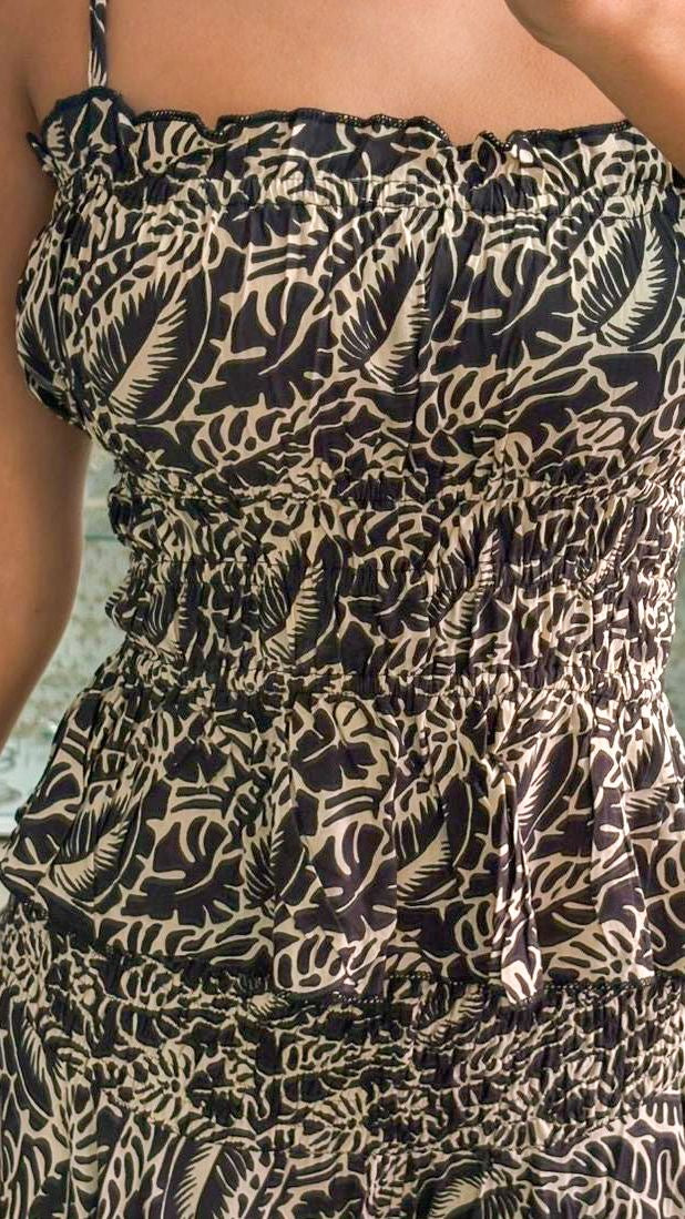 Description》 This sleeveless smocked top is the perfect blend of comfort and boho chic. Designed with adjustable spaghetti straps and a soft, stretchy shirred bodice, it offers a flattering fit that adapts beautifully to your shape. The playful ruffle detail along the neckline adds a feminine touch, while the flowy hem enhances its effortless style. Lightweight and breathable, it’s ideal for warm days and pairs easily with skirts, pants, or shorts for a versatile look. It's a very special piece completely handmade with lots of love ♡ Because of this, the placement of the fabric pattern may be different from that shown in the product image. Consider this as an original feature of the garment, rather than a defect. |