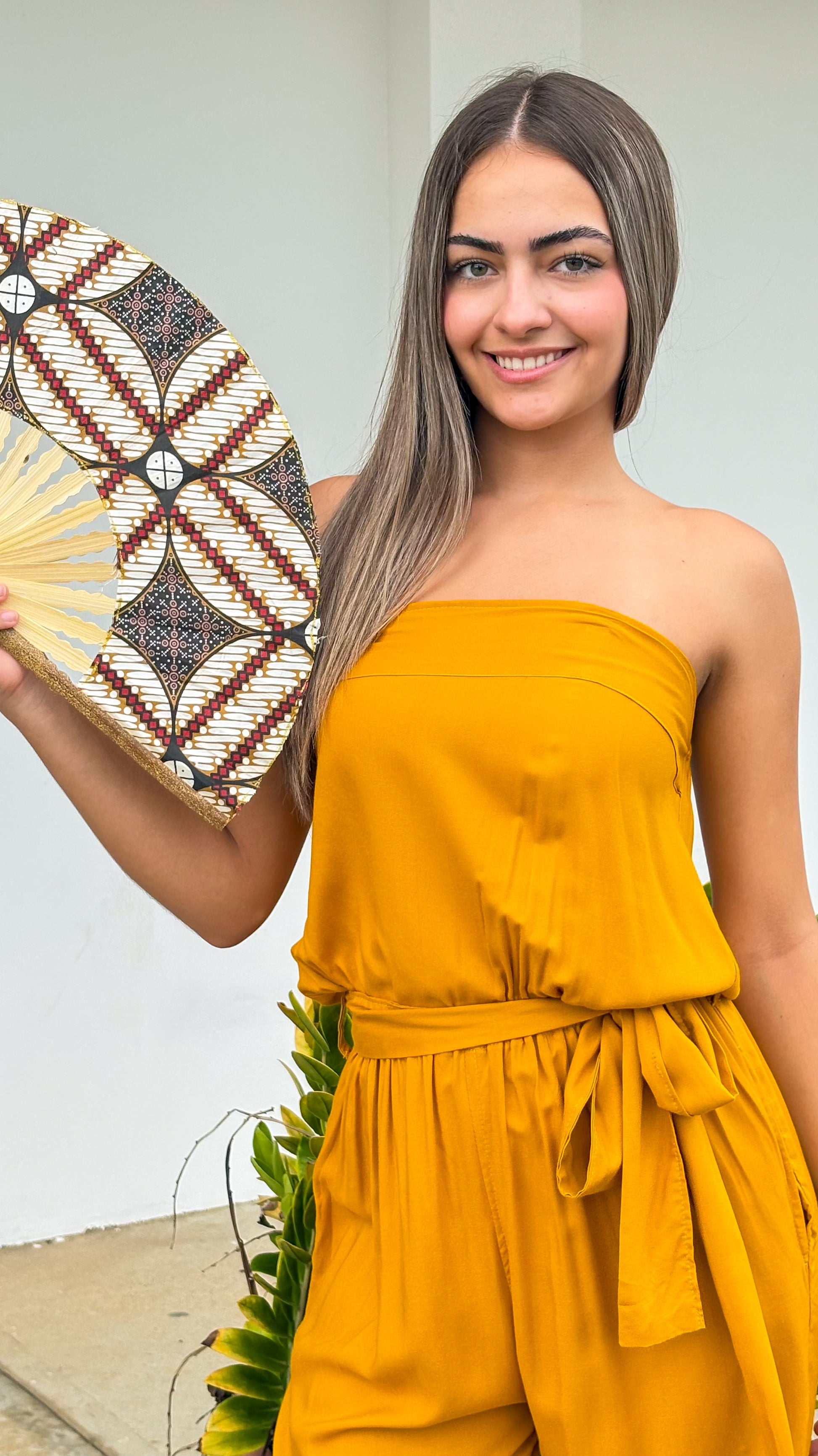 Description》 A breezy and effortless jumpsuit designed for comfort and style. Featuring a strapless neckline with an elastic back, a relaxed fit, and a self-tie waist that flatters your figure. Its flowy wide-leg silhouette and soft lightweight fabric make it perfect for sunny days, vacations, or casual outings. A versatile piece that transitions beautifully from day to night.  |