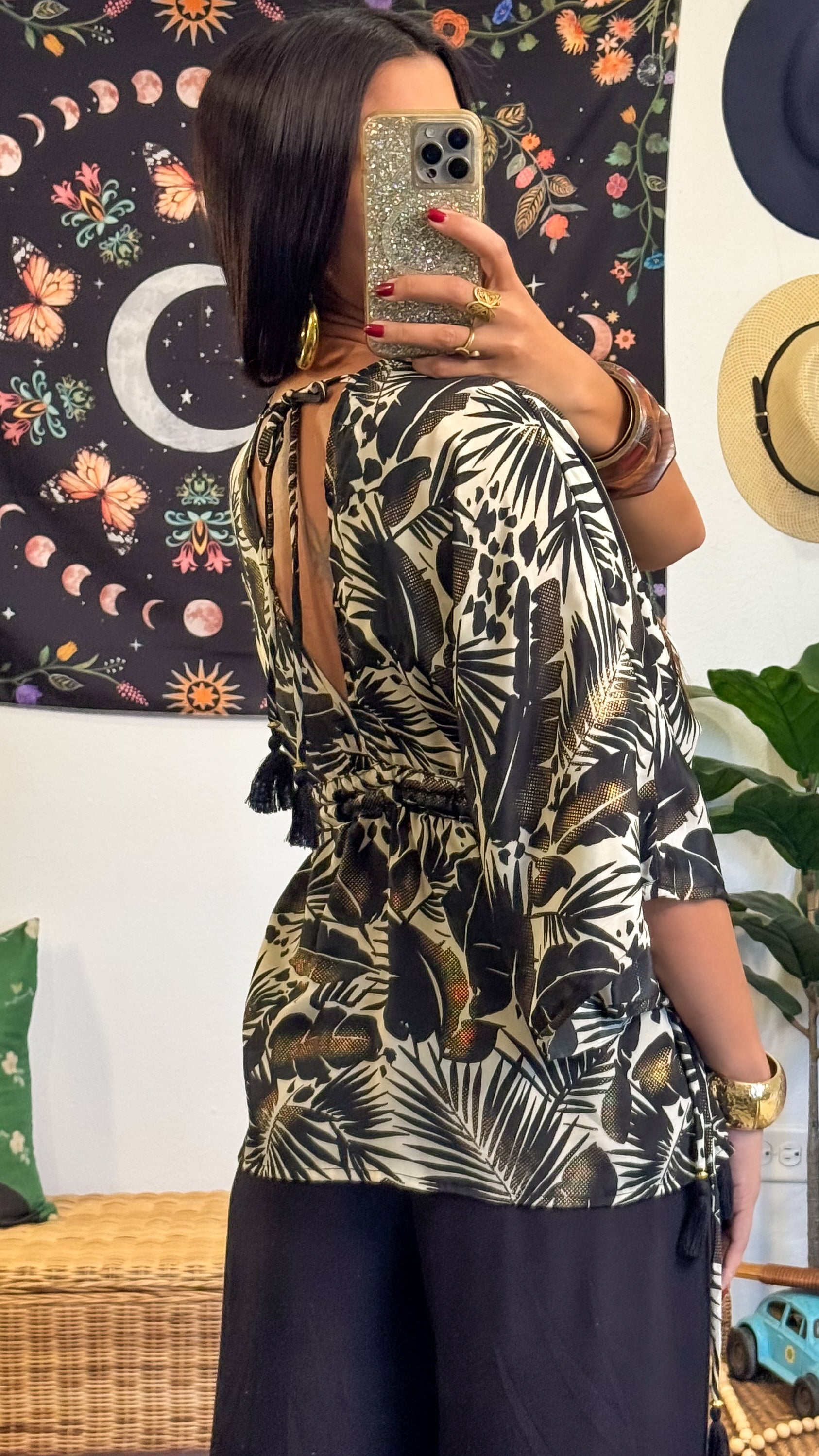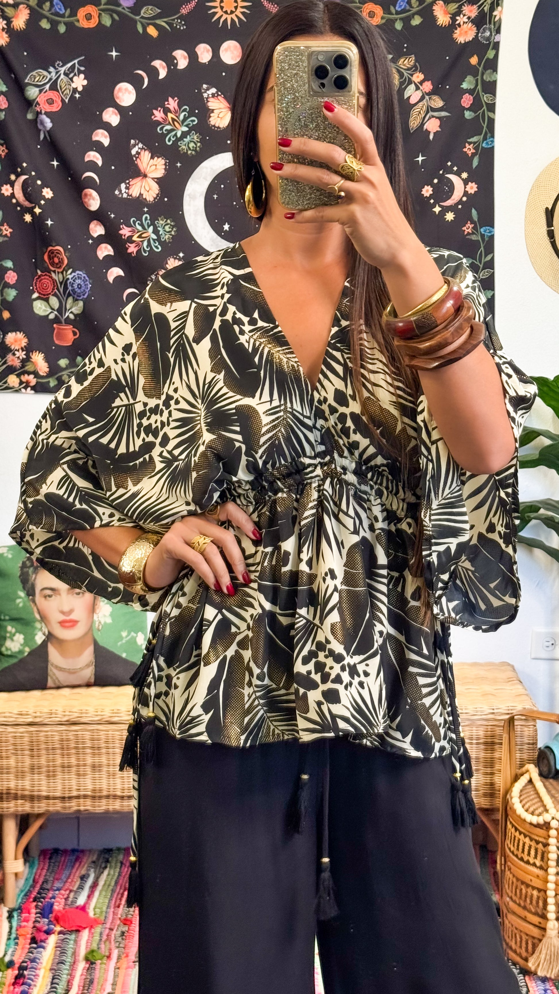Description》 A flowy, feminine blouse designed for effortless everyday elegance. Featuring adjustable waist ties and a comfortable elastic detail for a flattering, customizable fit. With soft draping sleeves and a relaxed silhouette, this top moves beautifully with you—perfect for styling from day to night About the fit》