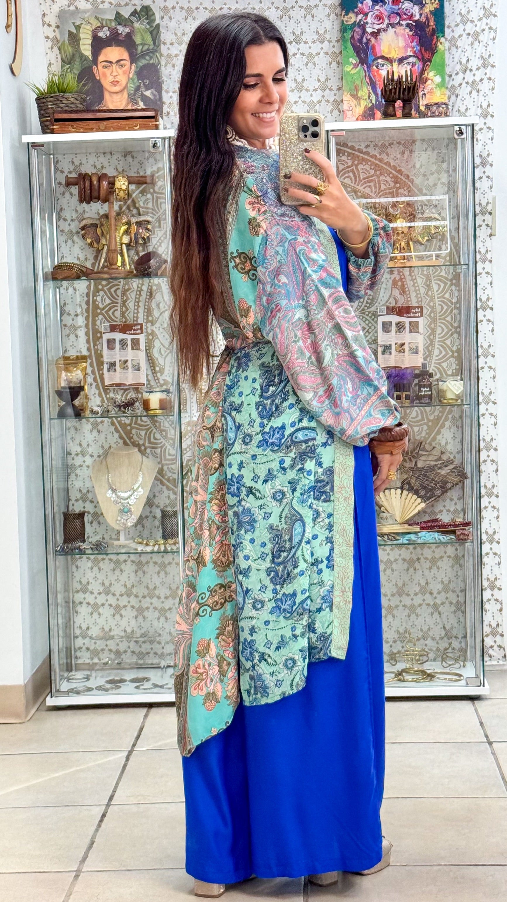 Description》 Make a statement with this stunning boho kimono. Featuring a mix of bold prints and earthy tones, this open-front kimono adds effortless style to any outfit. Designed with wide sleeves and a relaxed fit, it drapes beautifully and layers perfectly over jumpsuits, dresses, or denim. Lightweight and flowy, it’s the perfect piece to elevate your bohemian look from day to night. |