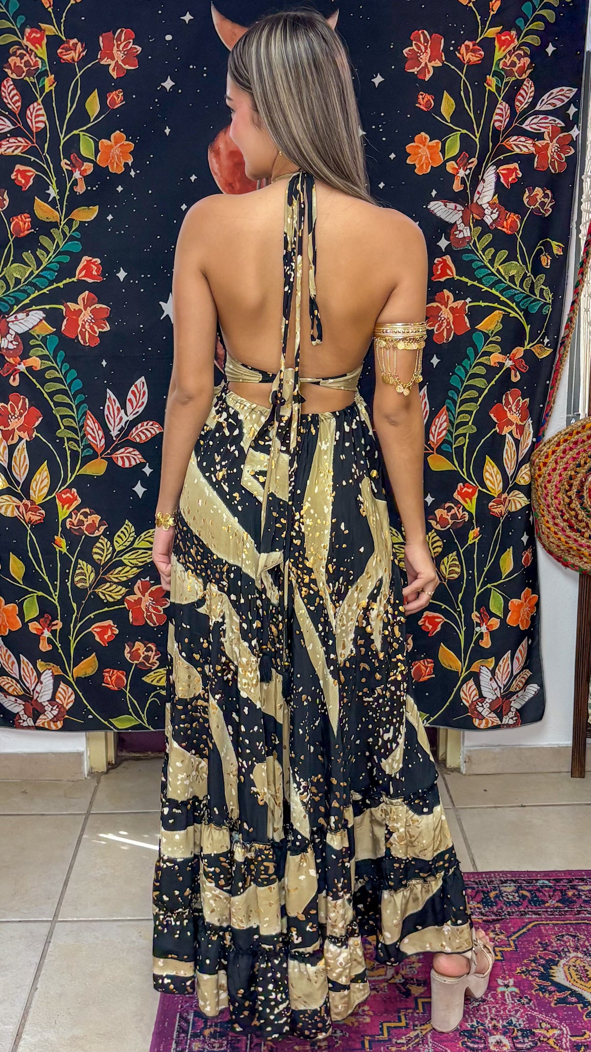 Description》 Step into effortless elegance with this halter-style maxi dress, designed with a flattering deep V-neckline and an adjustable tie-back for the perfect fit. The smocked waist enhances your silhouette, while the tiered skirt flows beautifully with every step. Lightweight and breathable, it’s the ideal piece for summer days, beach getaways, or bohemian-inspired evenings. It's a very special piece completely handmade with lots of love ♡ Because of this, the position of the fabric pattern may be different from that shown in the product image. Consider this as an original feature of the garment, rather than a defect. |