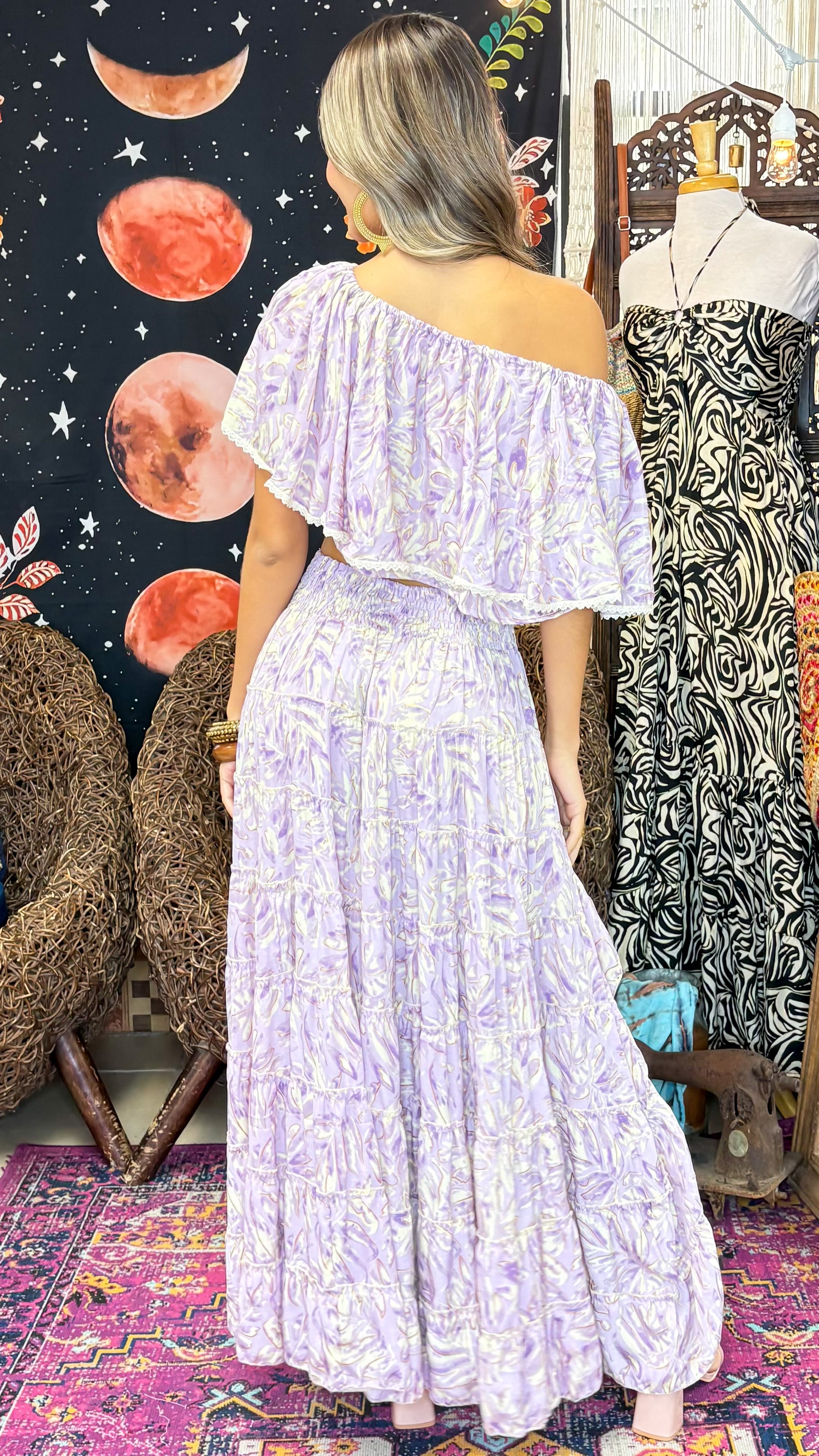 Description》 Gorgeous bohemian high low skirt, that can be worn as a top. Smocked back for better fit. Unlined. About the fit》 Measurement Length: 14"-40"" Waist: 28"-58" Hips: 52"
