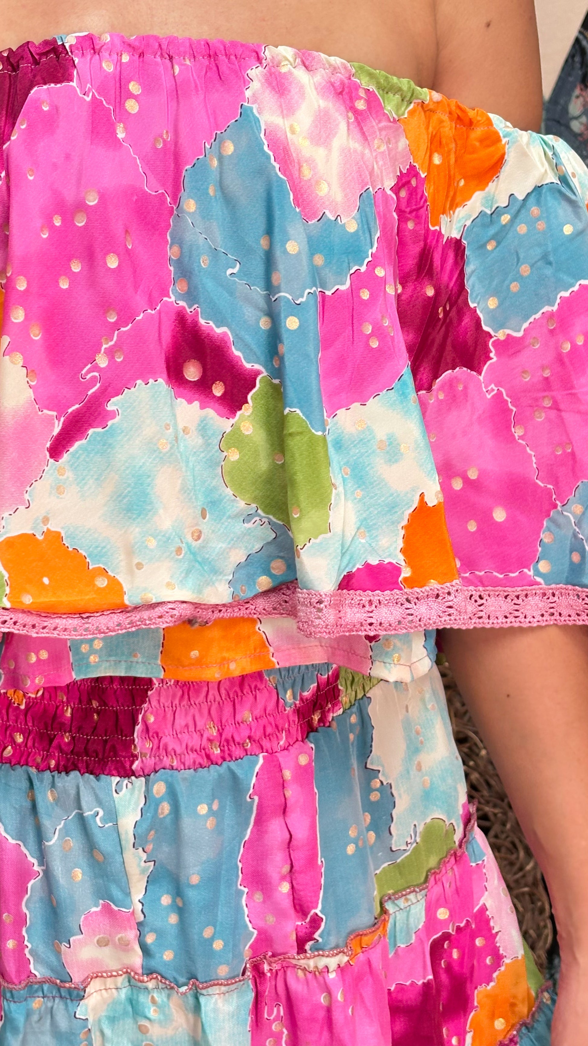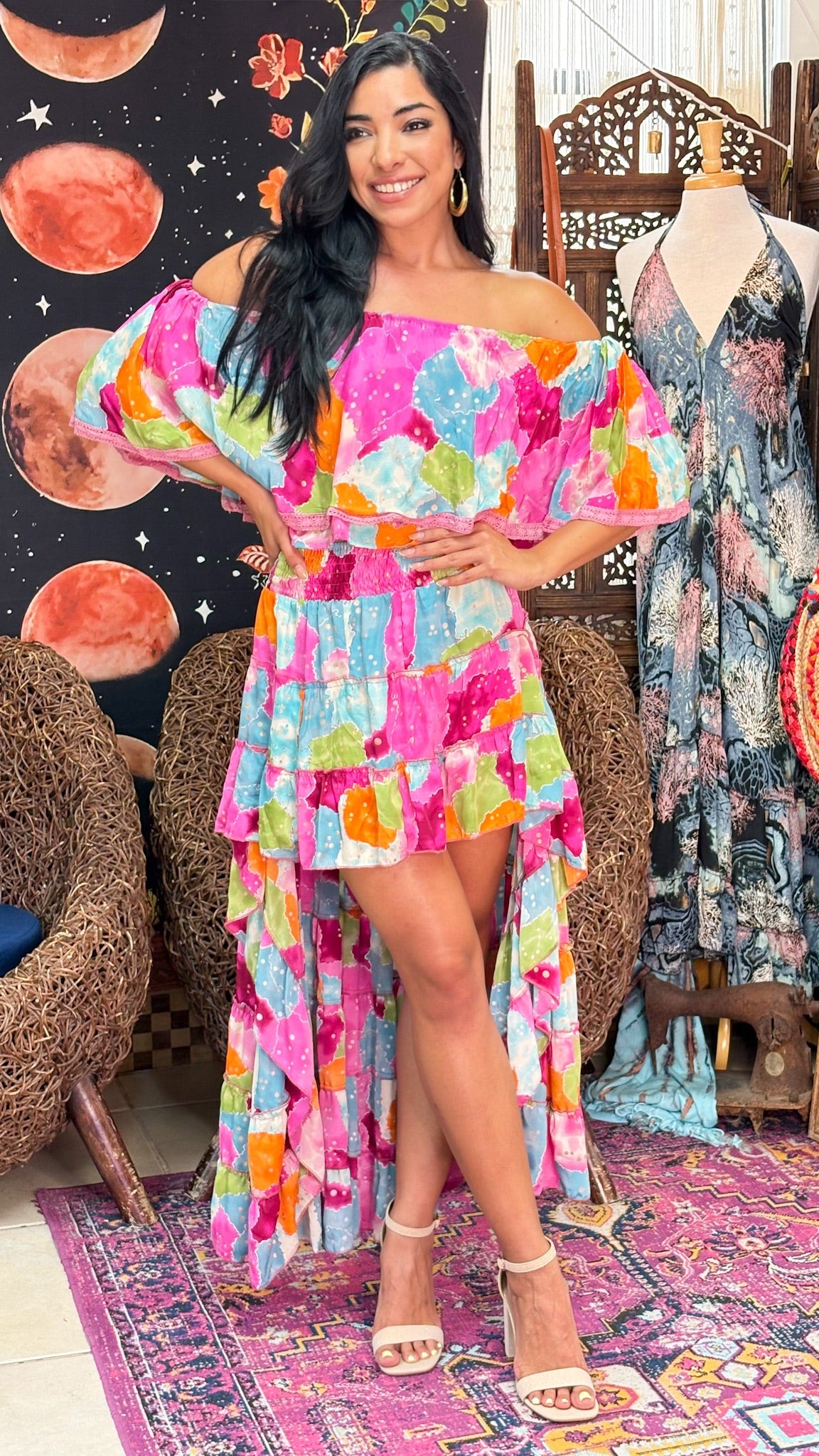 Description》 Gorgeous bohemian high low skirt, that can be worn as a top. Smocked back for better fit. Unlined. About the fit》 Measurement Length: 14"-40"" Waist: 28"-58" Hips: 52"