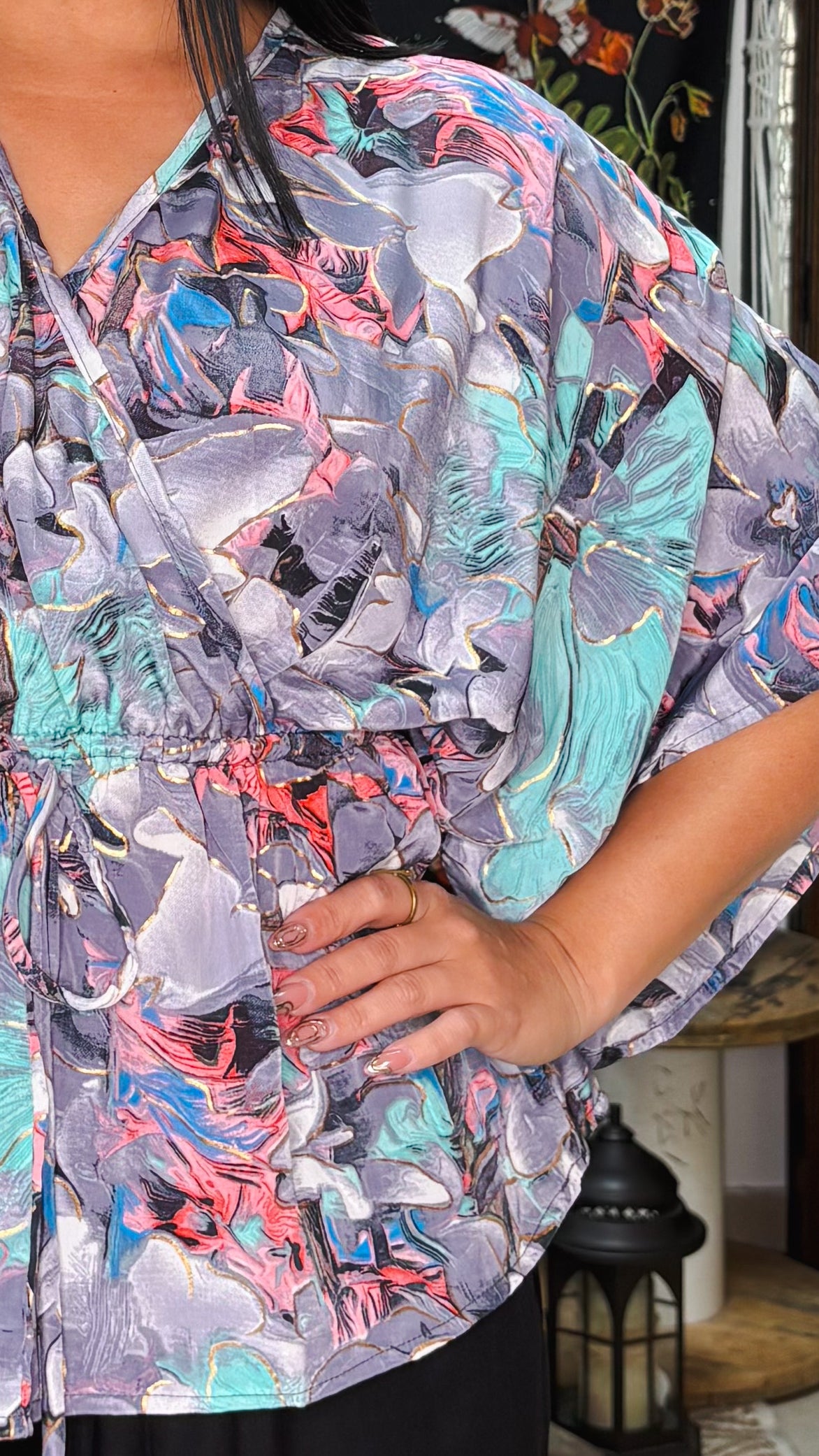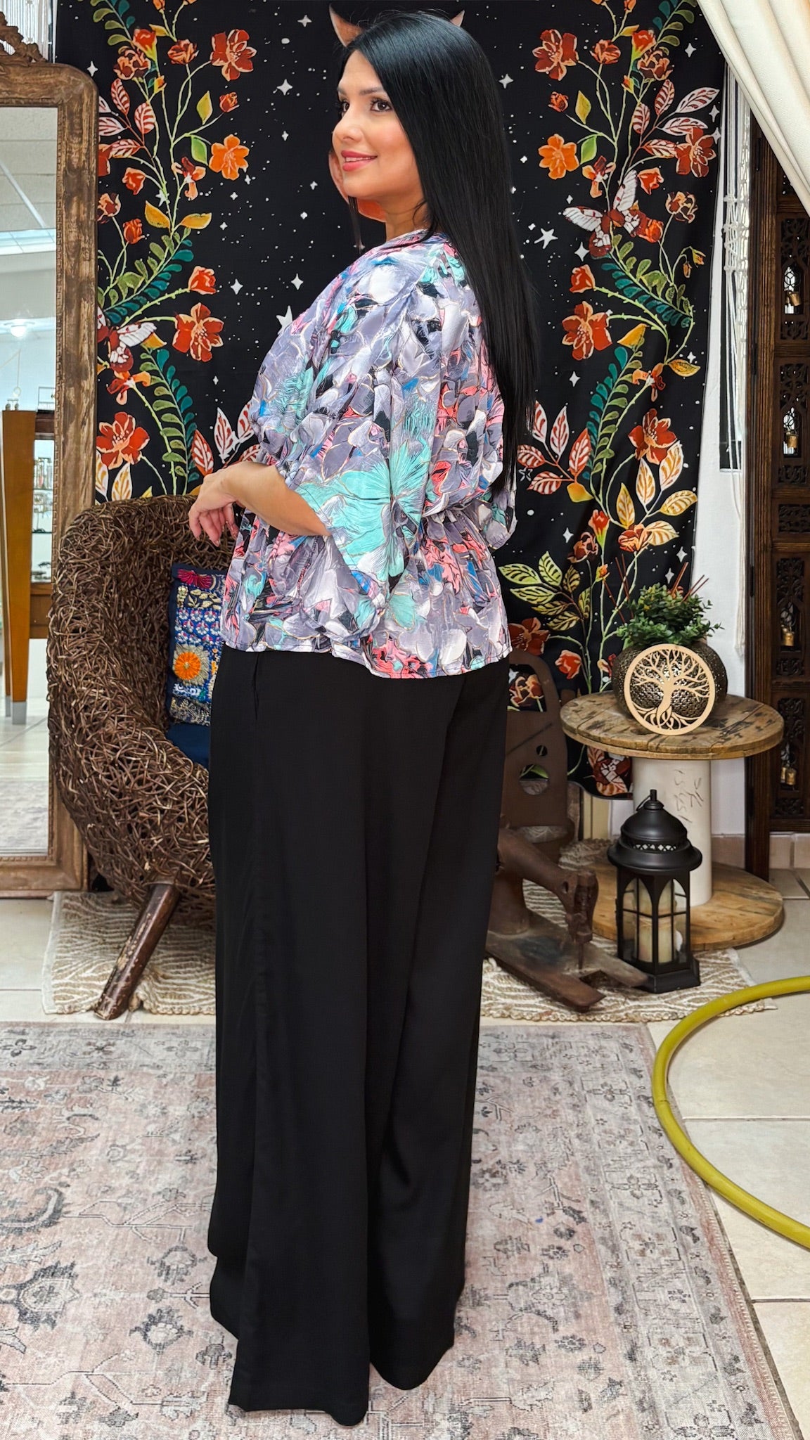 Description》 Flutter Sleeves Maracaibo Top, features adjustable self-tie, and elasticized waistline. About the fit》