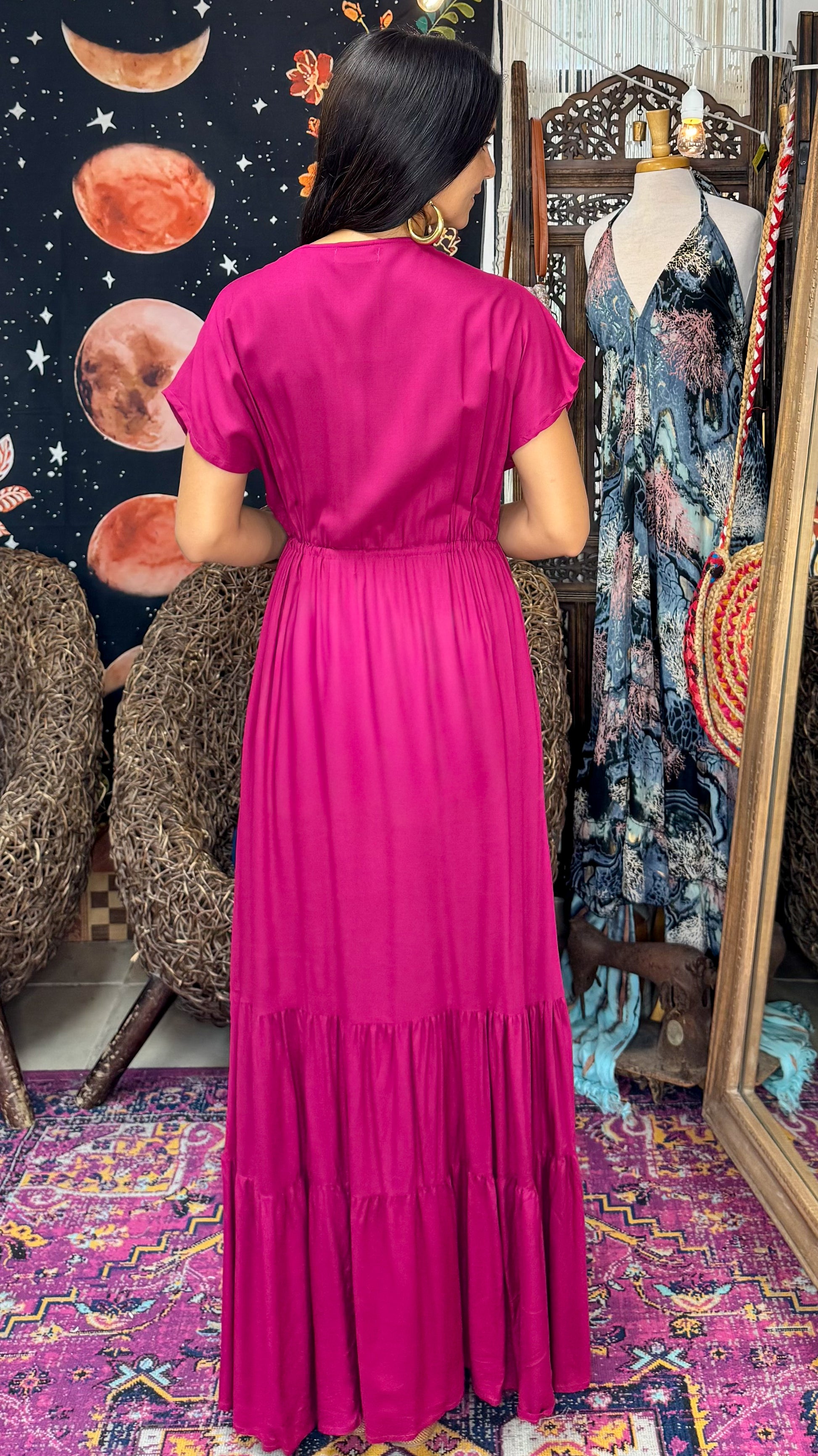 Description》 Effortlessly elegant, this maxi dress features a flattering V-neckline and adjustable drawstring waist that allows you to customize your fit. Designed with flutter sleeves and a tiered flowy skirt, it drapes beautifully for a relaxed yet feminine silhouette. Side pockets add a touch of practicality without sacrificing style, making it perfect for all-day wear from casual outings to elevated occasions. It's a very special piece completely handmade with lots of love ♡ Because of this, the position of the fabric pattern may be different from that shown in the product image. Consider this as an original feature of the garment, rather than a defect. |
