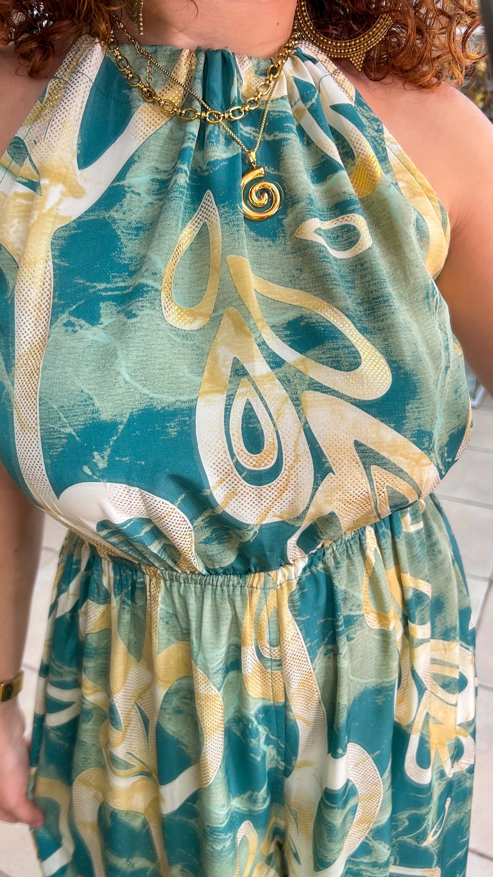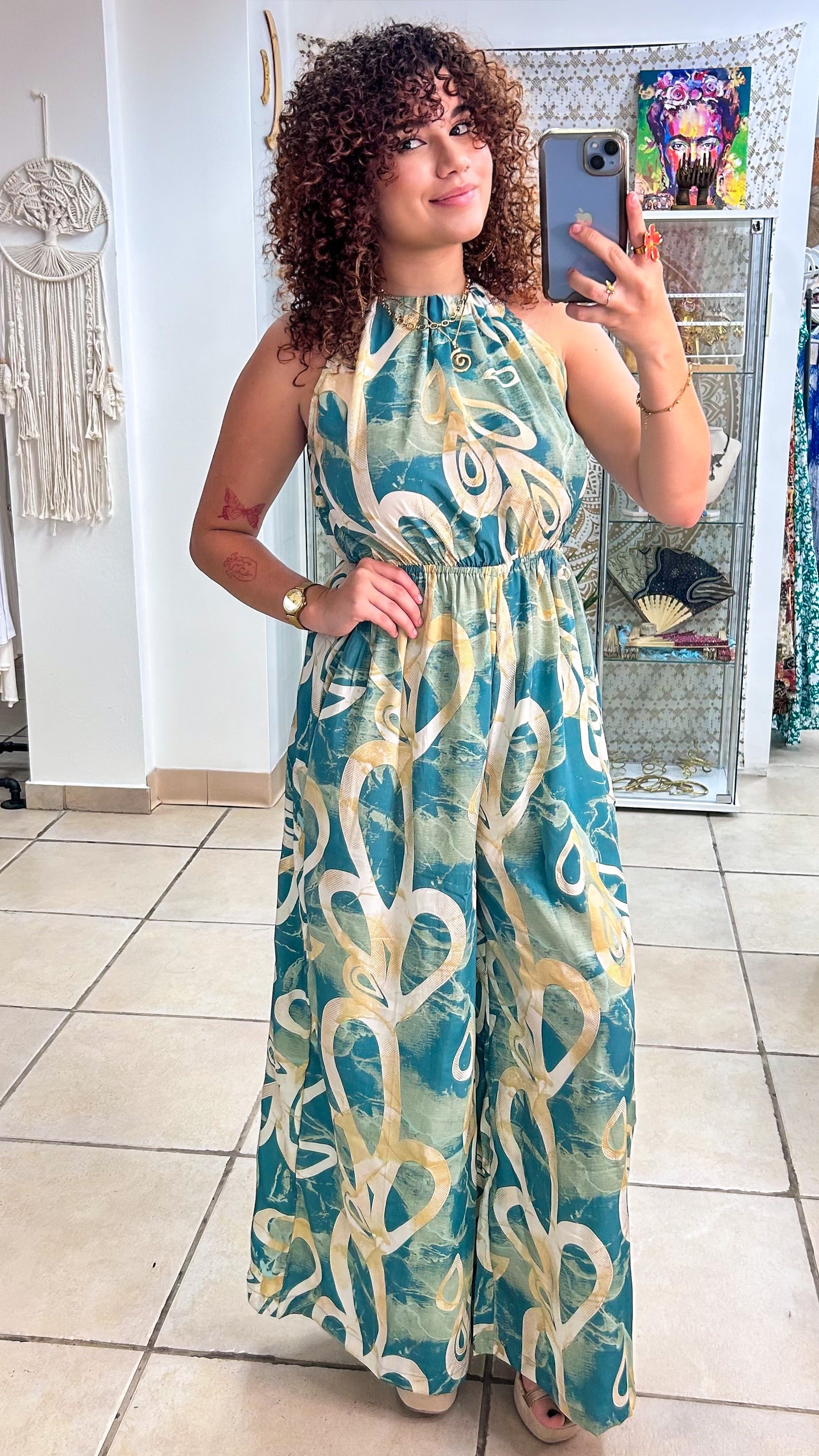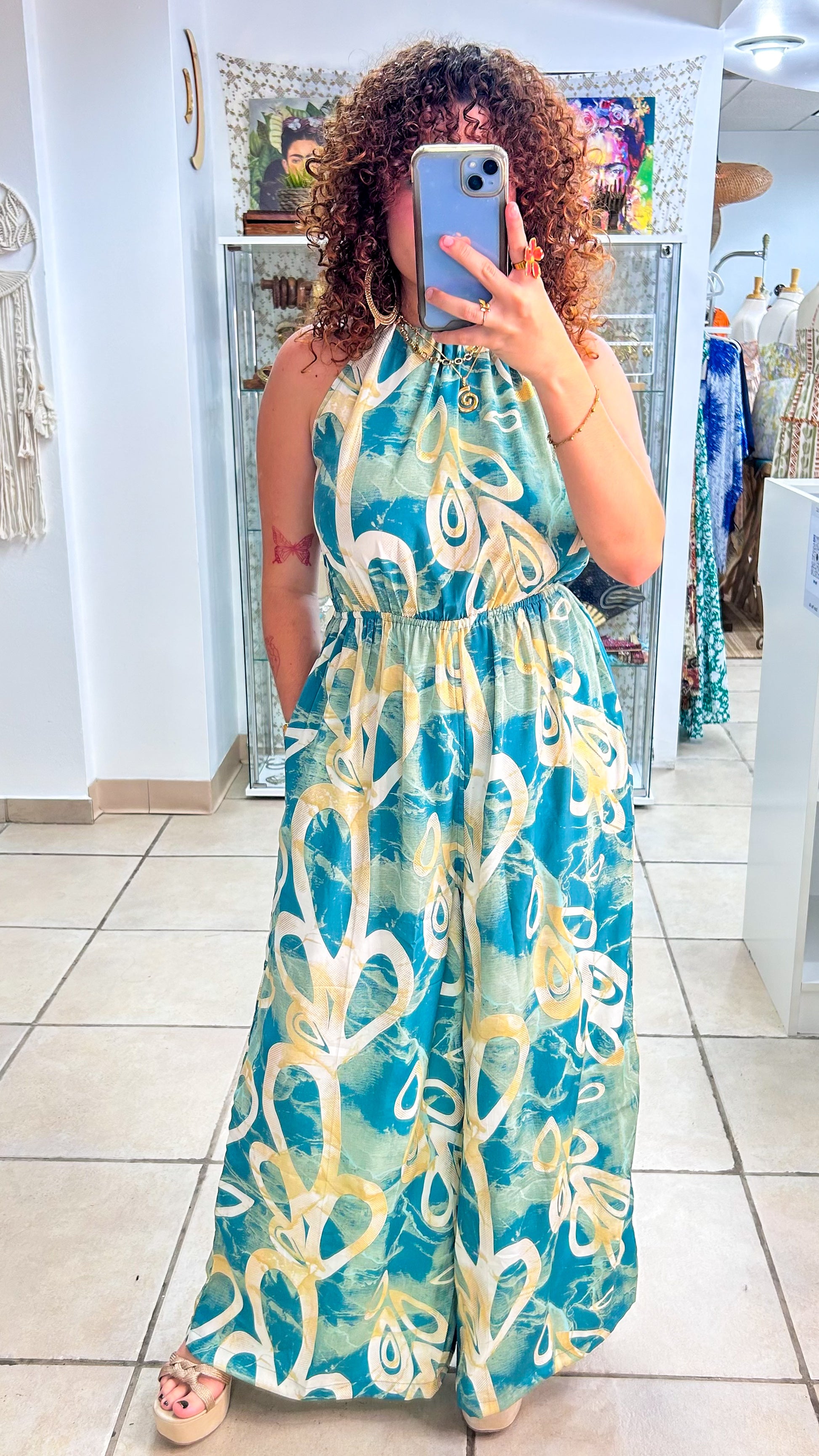 Description》 Make a statement in this flowy halter jumpsuit. Designed with a flattering elastic waistband for comfort and shape, and wide-leg pants that create a breezy, elegant silhouette. Perfect for day-to-night wear, this jumpsuit is lightweight, versatile, and effortlessly chic. Side pockets add a touch of practicality without compromising style.