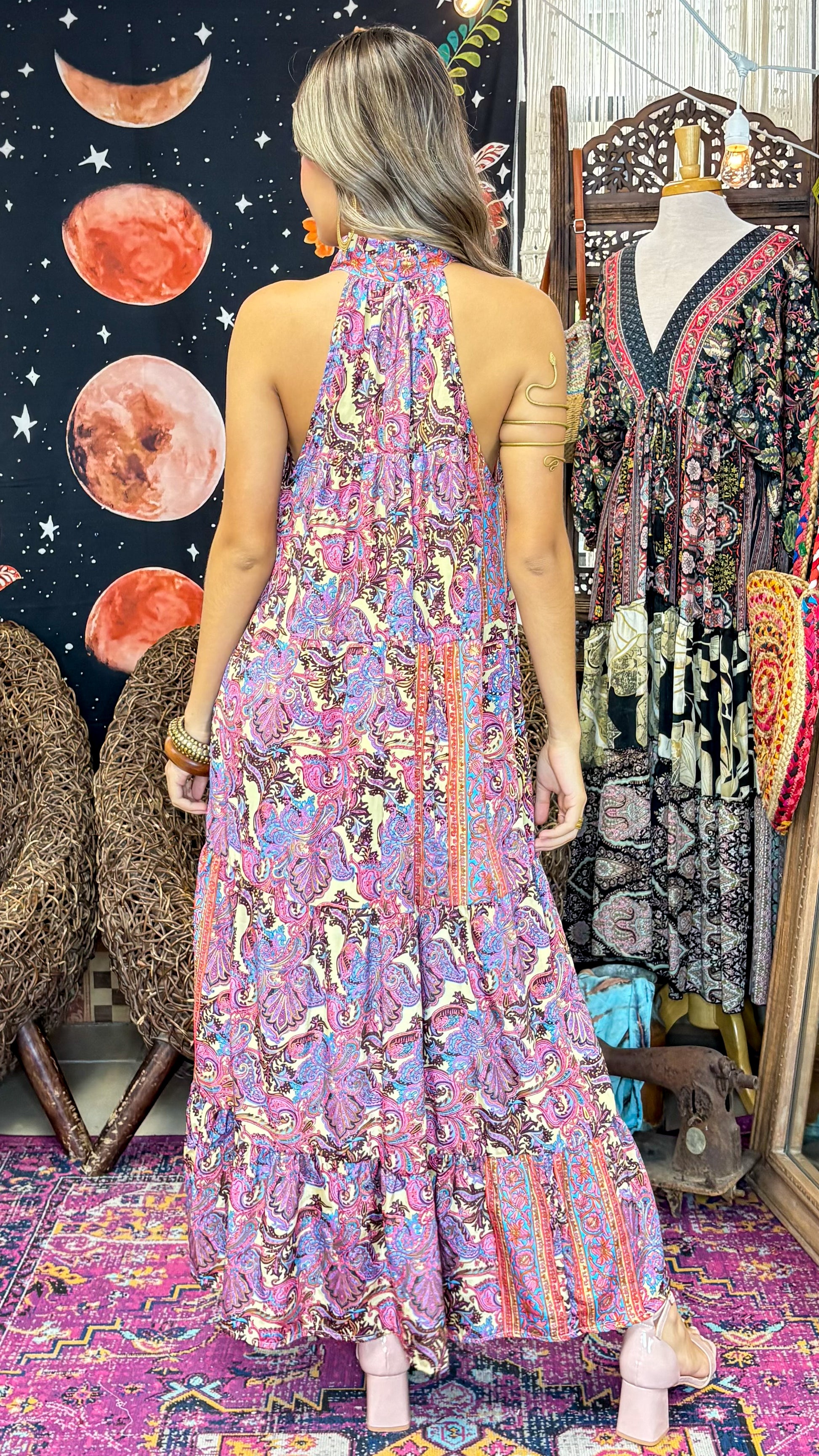 Description》 Bohemian-inspired maxi dress featured a ruffled neck with tassel ties and wide skirt. Belt not included It's a very special piece completely handmade with lots of love ♡ Because of this, the position of the fabric pattern may be different from that shown in the product image. Consider this as an original feature of the garment, rather than a defect. |