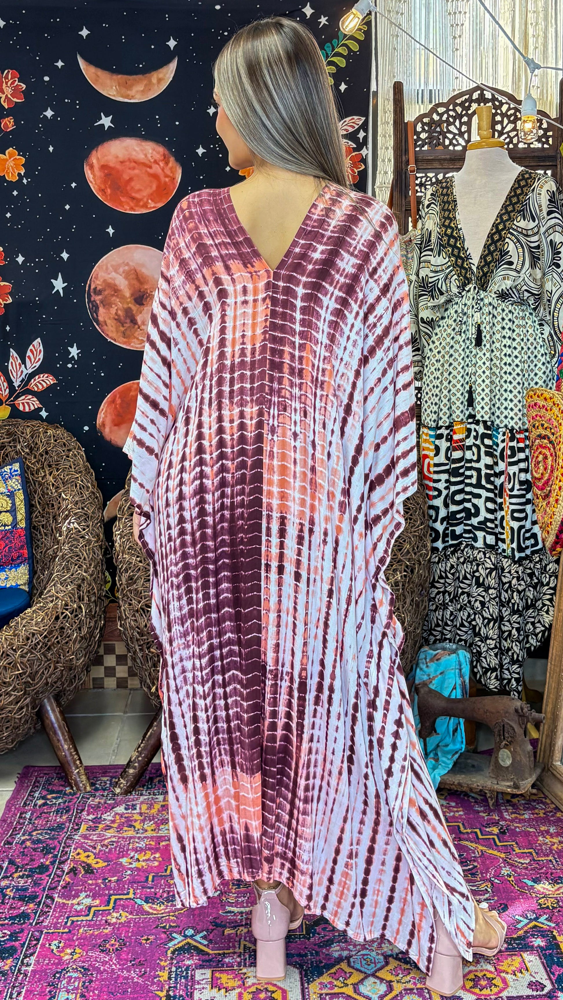 Description》 Embrace effortless elegance with this flowy kaftan-style dress, crafted in soft, breathable fabric that drapes beautifully. The loose silhouette and wide sleeves offer a relaxed, comfortable fit, perfect for warm days or laid-back evenings. Its eye-catching tie-dye pattern adds a bold boho touch, making it a standout piece for your beach escapes, travels, or everyday lounging with style. One size fits most. It's a very special piece completely handmade with lots of love ♡ Because of this, the position of the fabric pattern may be different from that shown in the product image. Consider this as an original feature of the garment, rather than a defect. |